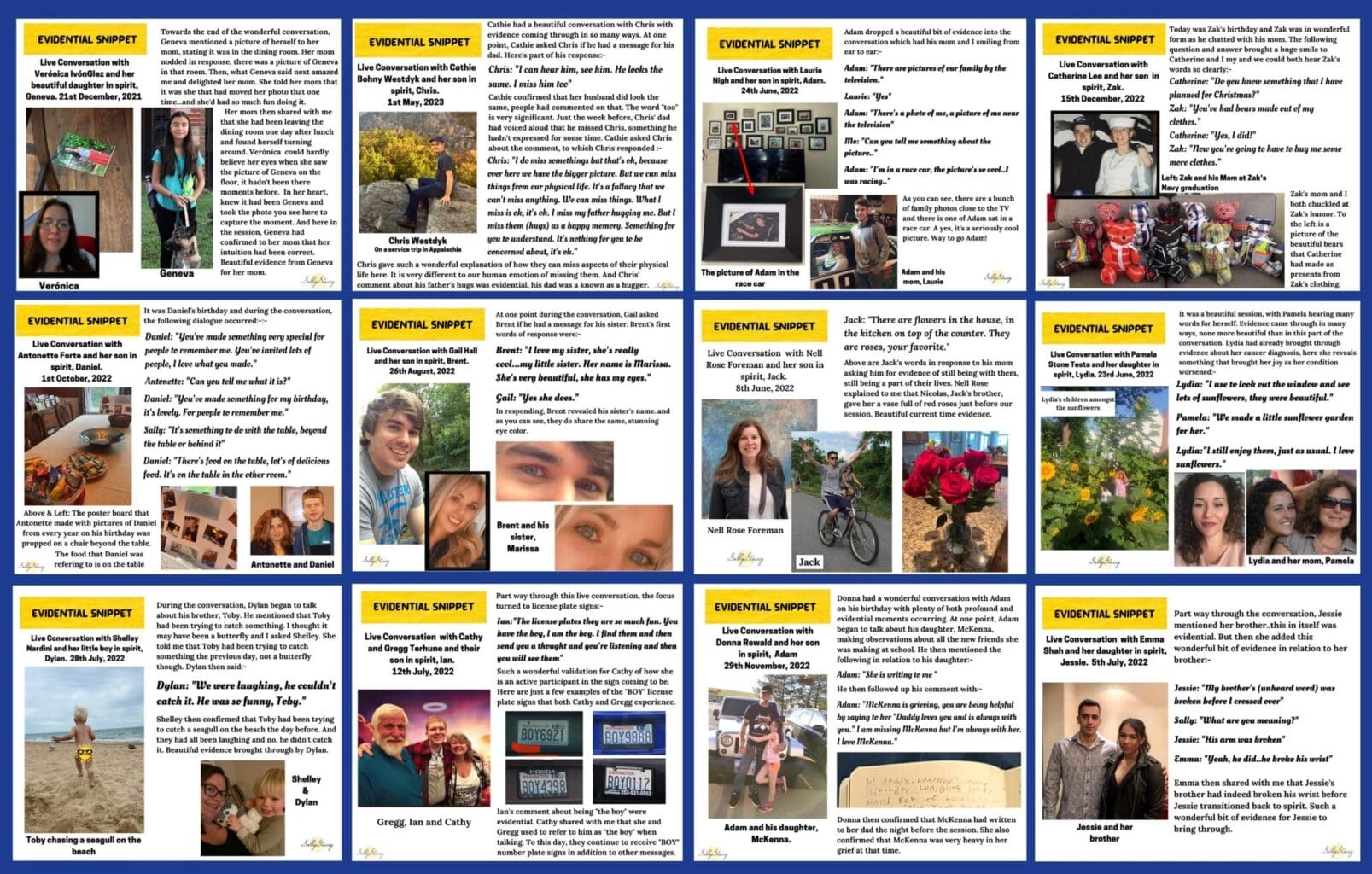 I began facilitating the live conversations in February, 2021, under the guidance and direction of my team in spirit. Fast forward to now, these conversations are still taking my breath away. Many of those that have experienced a live conversation, both here and across the veil, are likening these conversations to a phone call… and for good reason. These are real time, two-way, interactive, immediately responsive conversations that are taking place. They are jam packed with love, profound moments, humour and the sharing of memories and current happenings. Questions can be asked and discussions about ongoing communication and signs can take place. Personalities shine in this environment of direct communication and evidence slips into the conversations in wonderful ways. Images and moving images are now being downloaded during many of the live sessions. Please click on the link to learn more.