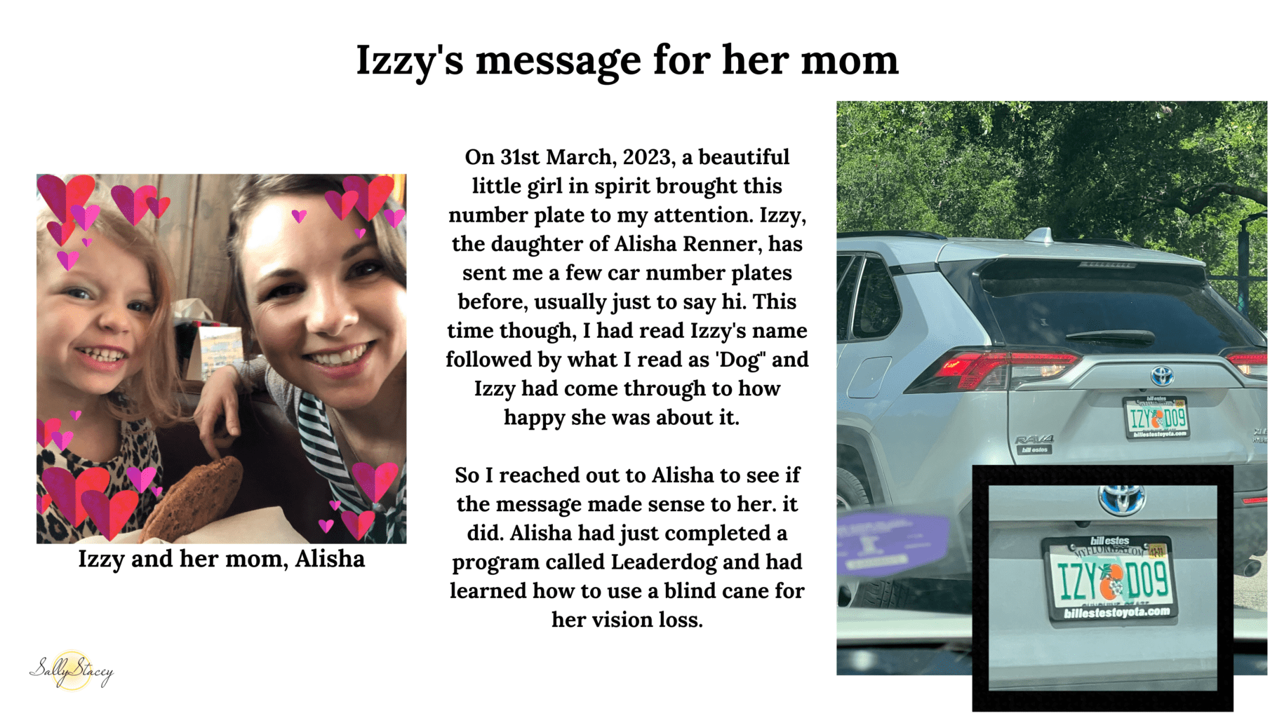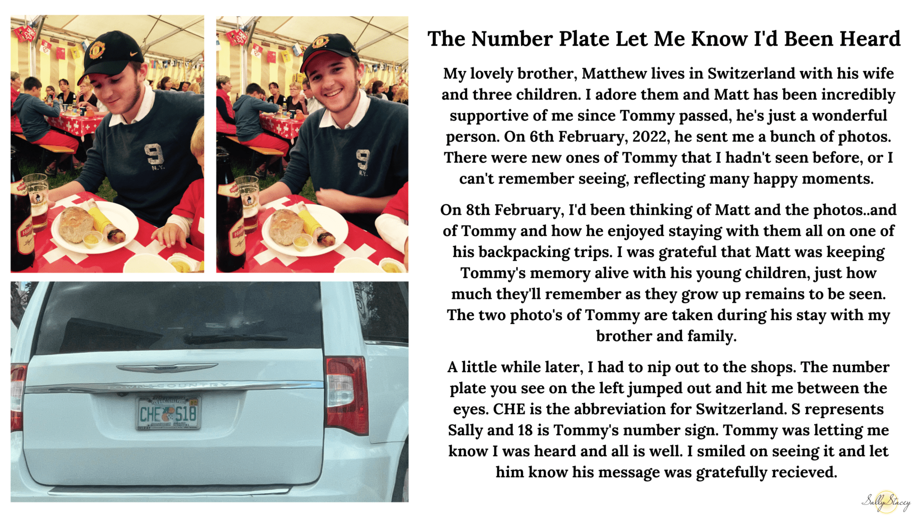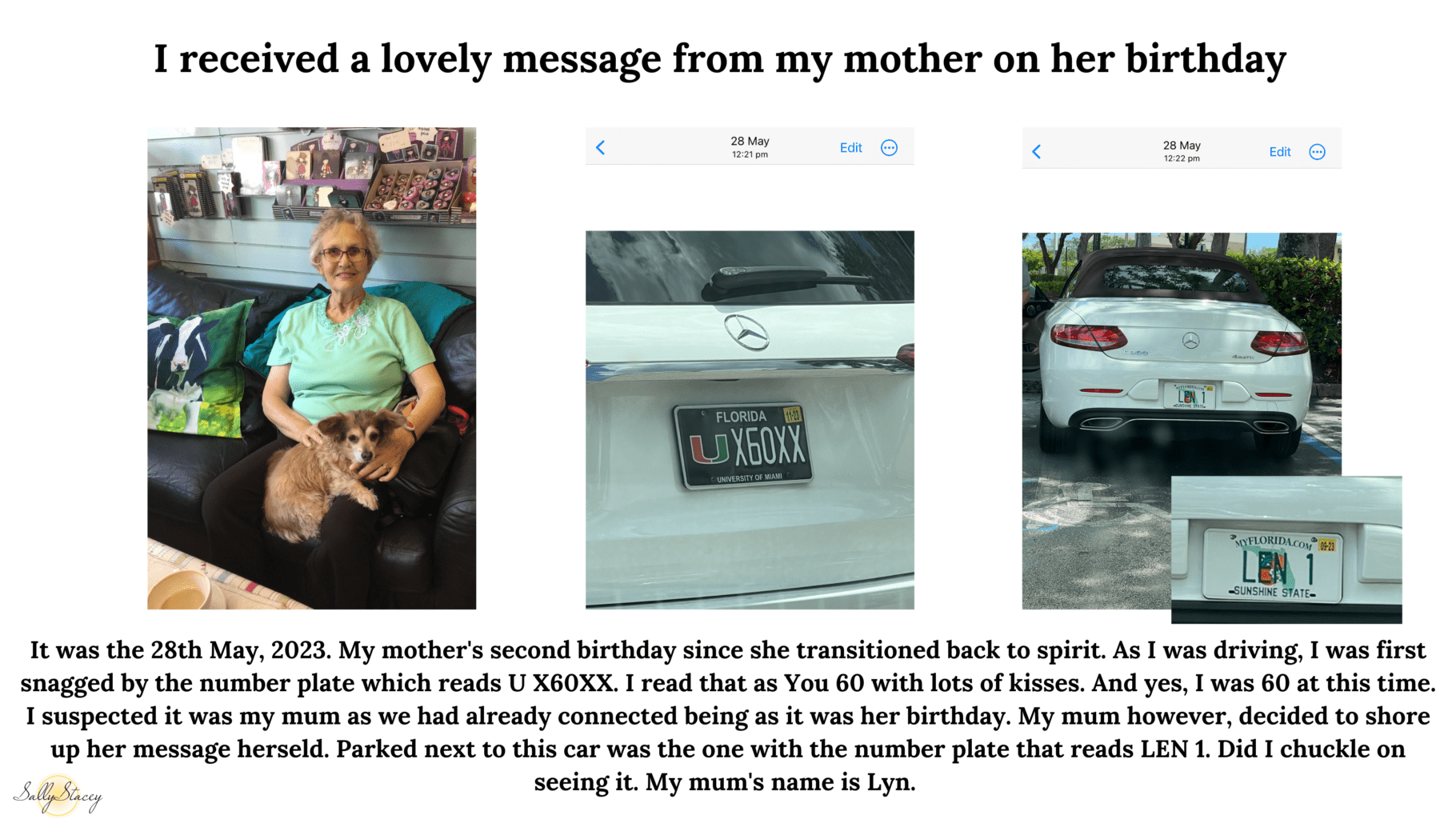 I don’t spend a lot of time in my car. I work from home and my favorite place to be since my son passed is in my garden. It’s where I feel most at peace and connected. But life dictates that I do have to venture out sometimes and when I do, I try to remain mindfully present and open to any signs or messages that the spirit world may wish to send my way. Receiving messages via car number plates and stickers on cars is a lot of fun. Sometimes the message can be a simple hello, other times there are messages given that are relevant to real time happenings at that moment. There’s a sort of coded language that is used with me and I can instinctively understand what is being conveyed. Below I have shared a selection of different messages that I’ve received. Enjoy.