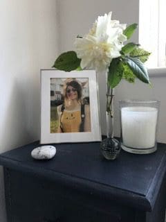 significance to the roses, Ellie was talking abut picking roses over and over again. She said “I think you picked roses for me I love, I love roses” This was a lovely piece of real time evidence as that morning I had picked three white roses from the front of the house, the very roses which I could see from the window and put them in a vase by her photo.