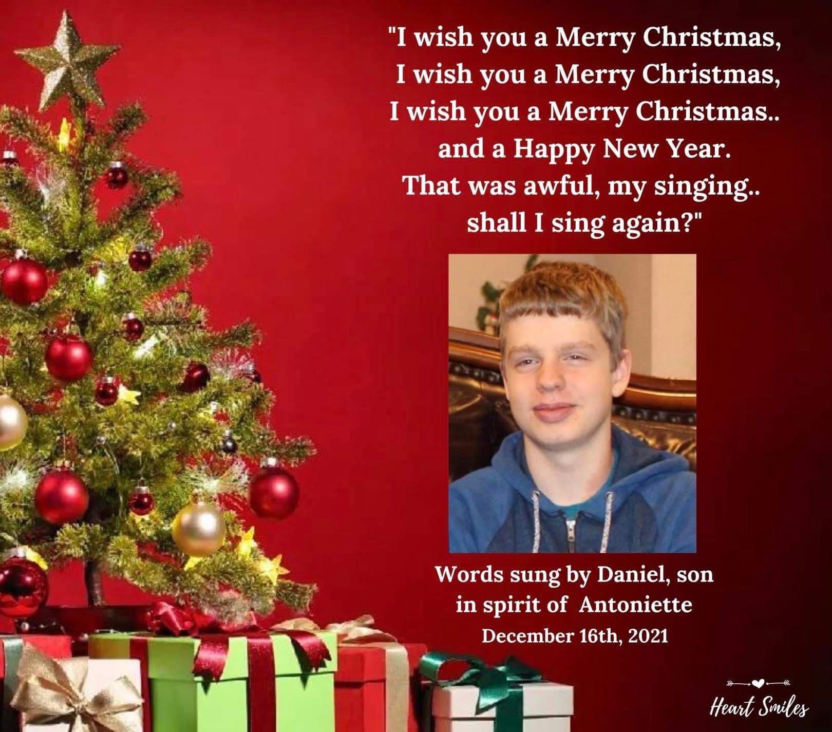 On 17th December, 2021, I held a beautiful session with Antonietta and her son in spirit, Daniel..another phone call from heaven, as he so aptly put it. At just 16 years of age when he passed, this is our third live conversation experience. Christmas was mentioned many times, both in relation to presents (he would clap as they were opened so he shared) and the Christmas tree, which he confirmed was in the family room. At one point, Antoinette’s grandmother came through and shared that she liked to watch them all decorate the tree together each year. His mum asked Daniel what cookies he’d like her to make and Daniel responded that she’d already made some, which was true. He said he will help her make some more. Daniel also asked his mom to buy his brother a gift from him this Christmas, something he would love.