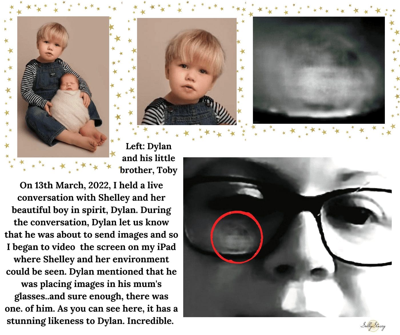 Sally was so warm and kind before, during and after the session and just time spent with Sally alone brings healing. But I was very fortunate to have more than just time with Sally, I was also able to speak with my son for which I will be forever grateful. Although I wasn’t able to hear Dylan’s words clearly, Sally was able to relay to me what he was saying. Early on in the conversation, Dylan talked about a memory he had. He said he remembered a song I would sing. (I instantly thought he would mention one of my choir songs I would have practised at home with him). But instead he mentioned the song “Twinkle Twinkle Little Star”. I was able to hear the melody of his words before Sally told me the song and knew he had said Twinkle Twinkle Little Star. This is indeed a song I would sing to Dylan, in fact it was The song I would sing from when he was a baby. This song was like magic – as soon as I would sing the first line Dylan would instantly stop crying. It was his comforter. And when his little brother was born, Dylan would join in and sing this song to help comfort his brother (although it didn’t have the same magic for Toby).